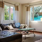 Vous pourrez utiliser une cafetière/théière, fournis dans un espace de repas. Vous trouverez également un micro-ondes, un réfrigérateur et de la verrerie pour préparer votre propre repas. L'aéroport de Toulon-Hyères est situé à 15 km, tandis que l'arrêt de bus Parc Chevaliers est extrêmement proche de cette villa.